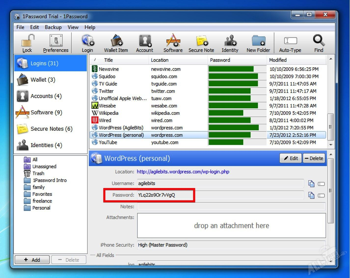 1password – самая популярная программа для хранения паролей и прочей секретной информации. Она доступна на OS X, Android, а не так давно вышла версия 1password для Windows. После установки приложения, пользователю предлагают подключить готовую базу или создать новую. Если вы установили Ван Пассворд впервые, то нужно создать базу. Придумайте для неё надёжный пароль. Он станет единственным паролем, который вам придётся держать в голове, об остальном позаботится 1password. Интерфейс программы прост и понятен, для тех, кто не силён в английском, есть русская версия. Раньше приложения для хранения паролей стоило немалых денег, но сегодня вы можете скачать 1password бесплатно.