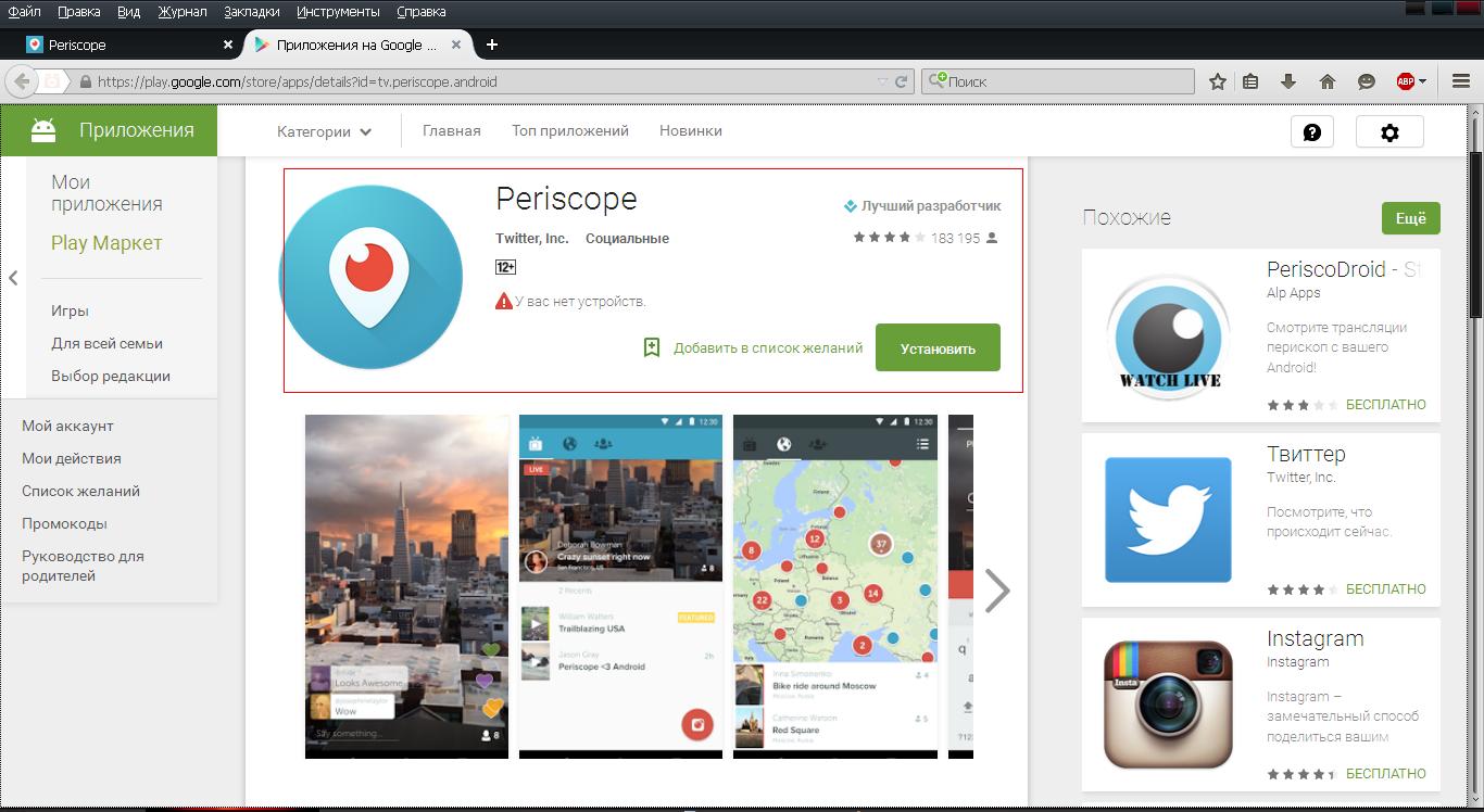 Шаг 8. После ввода персональной информации и поискового запроса оказываемся на страничке программы, чтобы скачать перископ на компьютер бесплатно требуется нажать на ссылку Установить.