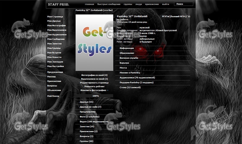 Стоит отметить, что все пользователи, у которых в браузере также установлено данное расширение, смогут оценить неповторимый дизайн вашей странички. Чтобы скачать GetStyles для контакта последней версии, нет надобности искать безопасные сайты по всему интернету – вы можете сделать на нашем онлайн-ресурсе быстро и без обязательной регистрации. Программа абсолютно не требовательна к системным характеристикам компьютера, а потому в процессе е использования не возникнет никаких зависаний или непредвиденных сбоев. Пользовательский интерфейс обладает интуитивно понятным навигационным меню, поэтому разобраться с основными настройками программы под силу даже новичку.