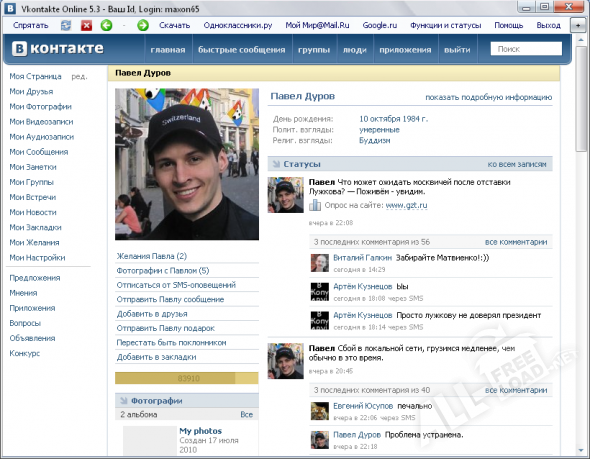 Программа не имеет ограничений по сроку использования и Vkontakte Online скачать бесплатно может любой пользователь.