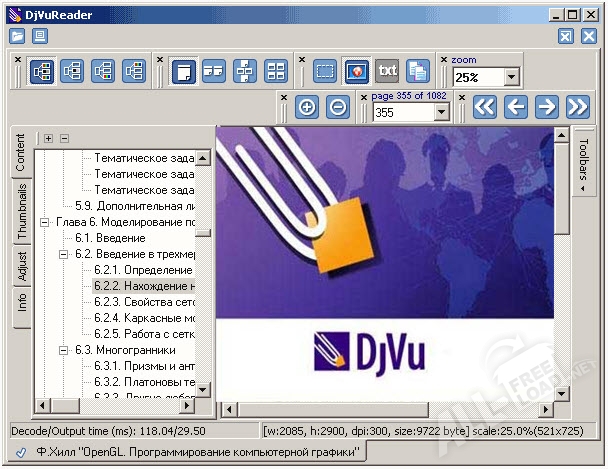 Основные возможности программы DjVuReader
