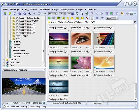 FastStone Image Viewer представляет собой бесплатную программу, предназначенную не только для просмотра различных графических файлов, но и для их конвертирования. Благодаря этой утилите пользователь может редактировать картинки или фотографии: менять их масштаб, поворачивать, улучшать качество, корректировать различные показатели (насыщенность, контрастность и прочее). FastStone Image Viewer способна легко работать практически со всеми существующими графическими форматами, к примеру, JPEG, PCX, NEF, BMP, ICO, GIF, WMF, PNG, TGA и TIFF, а также с RAW форматами, которые применяются в современных цифровых камерах. Поддерживается конвертация файлов в форматы PDF, TIFF, PXM, JPEG, ICO, GIF, TGA, PCX, BMP, WBMP и PNG.