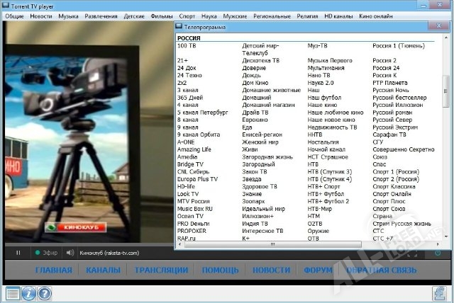 Мультимедийное приложение Торрент ТВ Плеер дает возможность просматривать онлайн-телевидение, которое транслируется в сети интернет по популярной ныне Torrent-технологии передачи данных. Реализованные в программе инструменты позволяют отображать видео в высоком качестве и без прерываний. База данных программы Torrent TV Player насчитывает порядка 400 телевизионных каналов, которые доступны для просмотра. Пользовательский интерфейс приложения отличается оригинальным графическим оформлением и удобным навигационным управлением. Программа поддерживает функцию аппаратного ускорения видеоизображения, благодаря чему обеспечивается высокая четкость картинки. Также имеется встроенная русскоязычная локация, что облегчает выбор параметров и работу с приложением в целом.