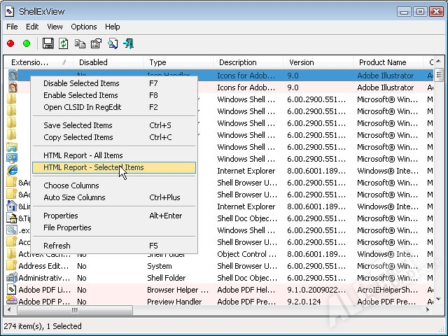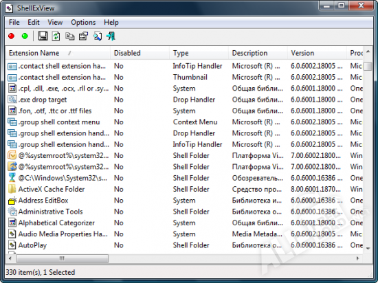 Особенностью ShellExView является то, что программу можно легко интегрировать в меню стандартного проводника и таким образом включать рабочее окно путем нажатий нескольких клавиш. Меню, внешний вид и характеристики программы наглядно демонстрируют, что приложение может активно использоваться пользователями с разным багажем знаний.