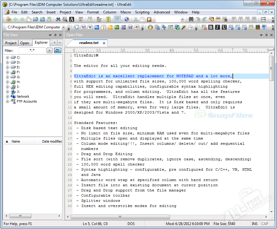 Вы желаете UltraEdit скачать бесплатно? Тогда воспользуйтесь соответствующей частью нашего интернет-ресурса, где для этого созданы абсолютно все условия. Если же переходить к более детальному разбору функций и параметров, то нельзя промолчать о поддержке самых распространенных и востребованных языков и разметок веб-программирования. Наличие FTP-клиента позволяет работать с различными сертификатами и протоколаями типа SSL и FTPS. Для особенно искушенных пользователей, в программе имеется возможность использование прокси и различных фильтров. Столь богатый функционал должен завоевать каждого пользователя, а значит он скачает и установить на свой компьютер UltraEdit.