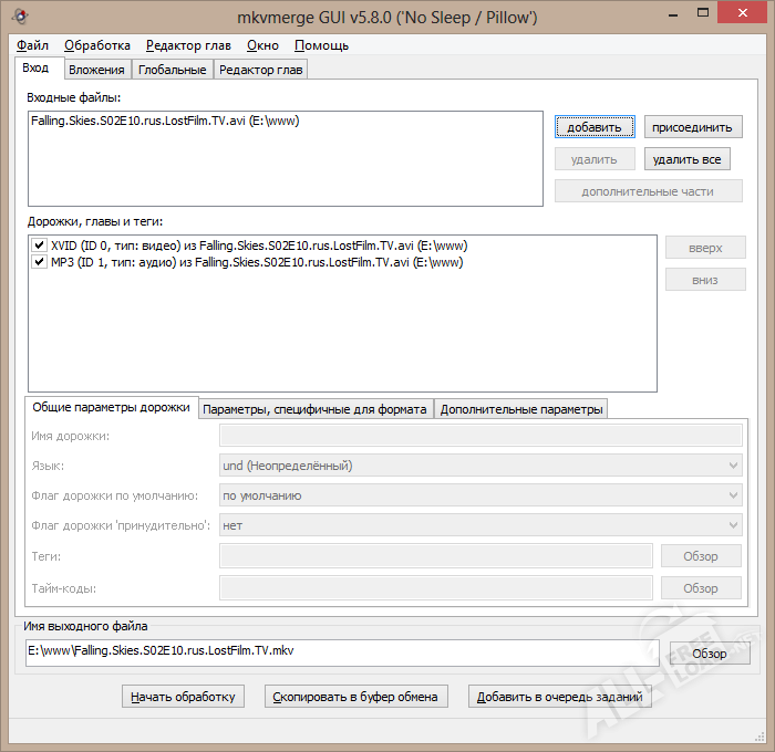 - редактирование звука, фрагментов и субтитров в MKV-файлах;