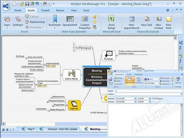 Mindjet MindManager – настоящее новаторское решение в современном ритме жизни. В отличие от отдельно взятых офисных приложений, данная программа включает в себя все необходимое для построения умного графика. Начиная от карт города с собственными отметками и заканчивая блокнотом – возможности куда больше. Достаточно скачать бесплатно Mindjet MindManager и установить на свой девайс для начала работы. Данное программное обеспечение (ПО) рассчитано на отдельно взятого потребителя или небольшую группу (например, отдел). Оно включает в себя графики, диагностику, новостную рассылку, карту города, личные заметки и т.д. Теперь не нужно работать с десятком программ и переключаться между ними, все их функции объединяет в себя «Mindmanager».