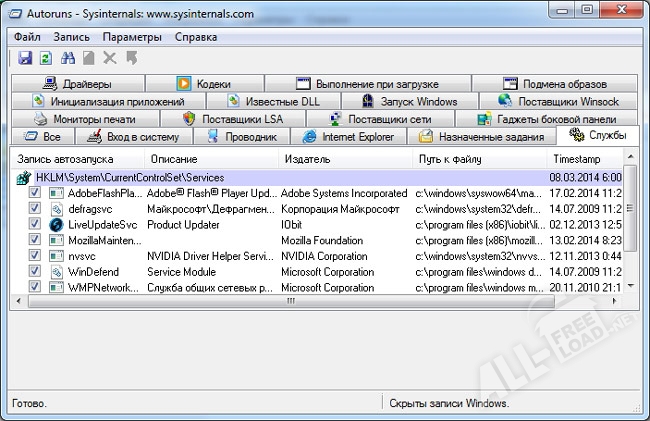 Autoruns – утилита с широкими возможностями, позволяющая максимально тщательно настроить функцию автозапуска в ОС Windows. Это очень мощный инструмент, который идеально выполняет свою функцию, работая с автозапуском во всей системе, откуда только может осуществляться автоматический запуск программ, служб, библиотек. Порядок отображаемых программ во всех списках Autoruns точно такой же, как и при запуске операционной системы. Этому монитору равных по возможностям не найти, а популярная утилита MSConfig и вовсе не сравнится по невероятно огромному количеству функций с Autoruns.