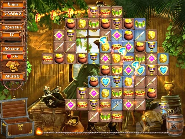 Остров сокровищ – это великолепное развлечение, которое не оставит ни одного любителя логических головоломок равнодушным. Тебе предстоит принять участие в поисках настоящих пиратских сокровищ, но для этого придётся серьёзно постараться, чтобы добраться до них. Передвигай фигуры и составляй из них одноцветные ряды минимум из трёх элементов, чтобы подобраться как можно ближе к заветной цели. Привлекательная графика и элементы аркады отлично дополняют эту логическую игру, создавая неповторимую смесь, которая понравится всем любителям приятного времяпрепровождения за компьютером. Рекомендуем скачать игру Остров сокровищ, так как это одна из наиболее привлекательных игр этого жанра!