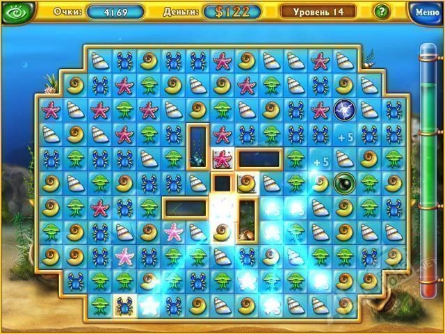 Игровой сюжет и система управления построены максимально просто и понятно, а скачать Фишдом может каждый желающий. Игровое поле в «Фишдом» состоит из разнообразных фишек: морских звёзд, ракушек, крабов и медуз. Ваша цель – строить игровые компоненты по три в ряд, в вертикальном или горизонтальном положении. Фишдом скачать бесплатно можно любому пользователю. Один ход – передвижение одной фишки. В ваших интересах, набрать максимально больше очков. Для прохождения на следующий уровень вам нужно собрать золотые слитки на игровом полотне. С первого взгляда может показаться, что игра очень проста, однако это только на первых уровнях. Следующий эпизод ещё тяжелее предыдущего, кроме того, справа встроен индикатор со временем, который постоянно подходит к концу. Различные бонусы помогут вам достичь цели. Такие элементы как динамит, бомбы и боеголовки созданы для того, чтобы принести вам как можно больше очков, выдаются они за определенное количество подряд выбитых фишек. Быстрое мышление и внимательный подход – залог успеха.