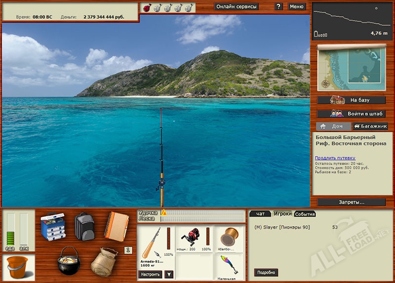 Любителю уединения в процессе рыбалки достаточно скачать Русскую рыбалку на компьютер и наслаждаться одиночеством. Если же вы любите компанию, радостью от пойманного трофея заходите с друзьями поделиться, побеседовать о результатах рыбалки и просто вступить в общение с людьми, близкими вам по духу, можно использовать режим он-лайн, и все, кто в данный момент играют в эту игру, составят вам компанию. Для этого необходимо только зарегистрироваться. Имейте в виду, что эту игру можно скачать бесплатно.