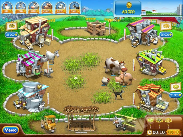 Управление игрой Веселая ферма. Печем пиццу скачать которую могут все поклонники подобного жанра приложений, осуществляется с помощью мыши. Чтобы заполучить продукт, начать приготовление продукта или поймать животное, используется левая кнопка мыши.