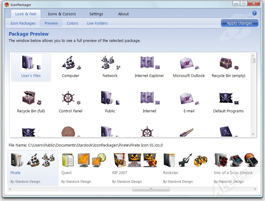 IconPackager – программа, которая поможет вам сделать систему уникальной. Воспользовавшись инструментами Виндовс, вы сможете изменить только некоторые иконки, при этом, столкнётесь с жесткими ограничениями по размеру и качеству иконок. Эта программа откроет для вас безграничные возможности по кастомизации внешнего вида системы. Этому способствует огромный набор встроенных изображений, подходящих под самые разнообразные стили оформления. Также нельзя не отметить дополнительных функций, которые облегчают работы, связанные с настройкой внешнего вида. Именно ради них стоит скачать IconPackager. Конечно, из-за огромного набора возможностей утилита получилась слишком тяжёлой для понимания. Её интерфейс вряд ли можно назвать удобным, ведь состоит он из огромного количества категорий, пунктов меню и так далее. Однако стоит немного привыкнуть, и вы сможете без проблем менять нужные иконки за считанные секунды.