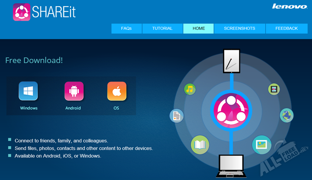 - ShareIT разработана для Windows, ОС Android, Mac и IOS.