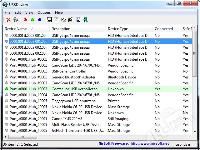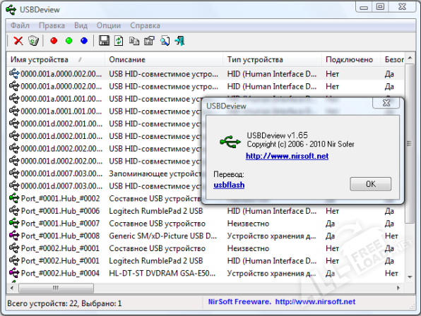 Основные особенности USBDeview:
