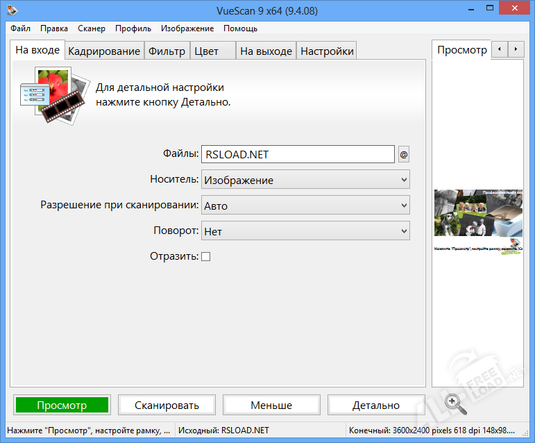 Приложение VueScan умеет выполнять пакетное, а также многопроходное сканирование, что заметно сможет ускорить и упростить сам процесс работы с оцифровкой изображения. Тут присутствуют и аппаратная регулировка экспозиции, и выбор максимальной глубины цвета и, естественно, выбор формата сохраняемых изображений, полученных со сканера.