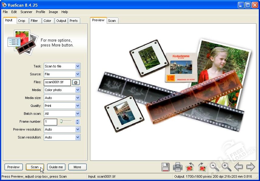 Особенно востребовано использование VueScan тогда, когда пользователь работает с прозрачными оригиналами, к которым относятся слайды и негативы, поскольку в базе данных приложения имеются данные о характеристиках цвета свыше 150-ти типов плёночных носителей.