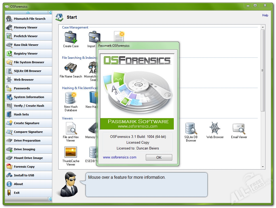 Все утилиты, содержащиеся в пакете OSForensics, могут быть полезны для повседневного использования. При помощи приложения можно производить поиск утраченных файлов, паролей, вредоносных вирусов. Функциональные возможности утилиты позволяют создавать цифровые подписи, в которых содержится описание всех имеющихся на носителе информации файлов. Эта функция предусматривает отслеживание всех действий (просмотр, изменения) с файлами. Пользователи, которым удобнее работать с OSForensics на русском, могут выбрать русский язык из других языков интерфейса.