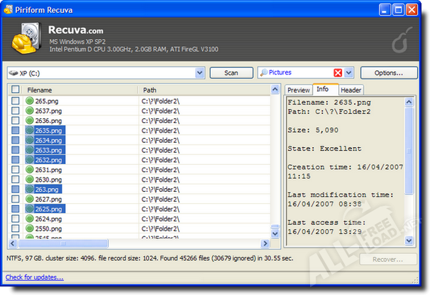 Основные достоинства программы Recuva: