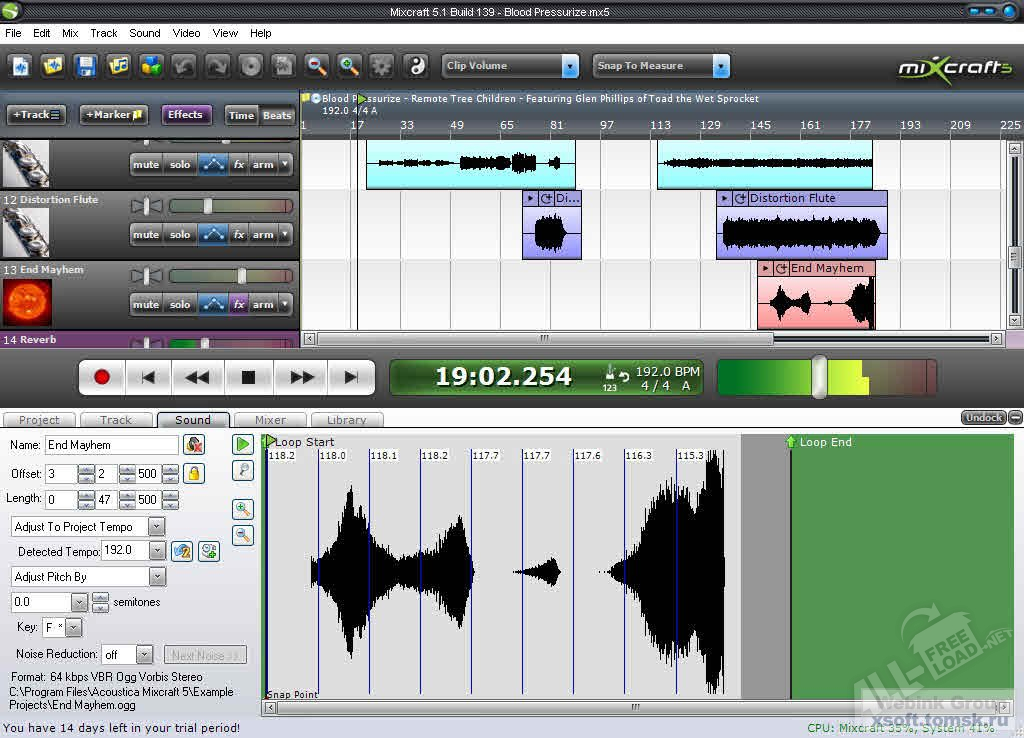 Благодаря наличию виртуальных инструментов, возможно создавать собственные музыкальные композиции. В программе MixCraft реализовано множество звуковых эффектов и синтезаторов, которые отличаются высоким качеством звучания. Помимо этого, можно загружать в базу данных приложения сторонние VST инструменты и использовать их при создании треков или обработке готовых музыкальных композиций. Русская версия программы, которая имеется на нашем сайте, существенно облегчит работу с аудиофайлами. Также утилита MixCraft поддерживает обработку видео-контента.