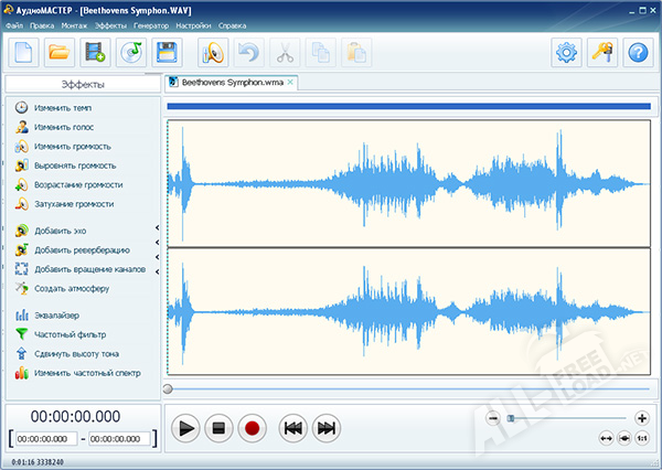 Приложение АудиоМастер отличается от аналогичных программных продуктов высокой скоростью обработки данных и обширной библиотекой различных звуковых эффектов.