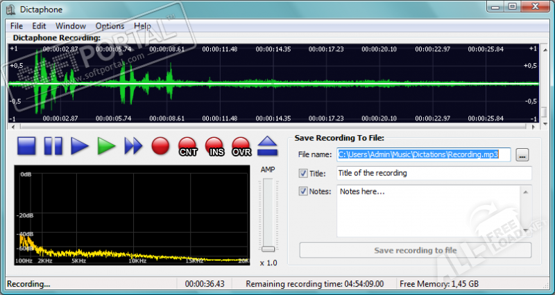 Скачать Диктофон на компьютер бесплатно можно на этой странице. Это не требует регистрации, а сам файл программы прошел тщательную антивирусную проверку. Мы же добавим к сказанному в предыдущем абзаце, что другой частью описываемого здесь приложения является Менеджер Записей, который позволяет Вам управлять записями и редактировать их. При этом записи, сделанные с помощью Dictaphone в формате MP3, редактируются в Менеджере без декодирования. Доступны изменения записи с указанной позиции. Иными словами, если первая половина записи удалась, а вторая — нет, Вы можете не перезаписывать первую часть вместе со второй и не писать вторую в отдельный файл. Достаточно установить запись на тот отрезок времени, когда дело пошло не так, и Вы получите один файл с полностью корректным результатом.