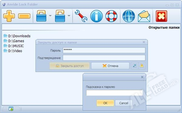 Разблокировать доступ к запаролированным папкам можно всего в несколько кликов. В том случае, когда вы не можете вспомнить пароль, программа автоматически предложит подсказки, которые необходимо обязательно указать при составлении шифра. В приложении реализована обширная библиотека языковых пакетов, а потому работать с этой утилитой – одно удовольствие.